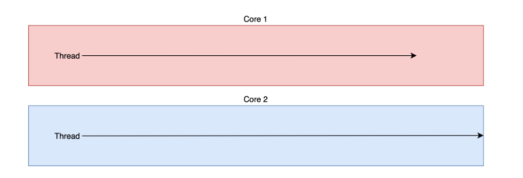 | 동작 방식 | 싱글 코어에서 멀티 쓰레드(Multi thread)를 동작 시키는 방식 | 멀티 코어에서 멀티 쓰레드(Multi thread)를 동작시키는 방 |