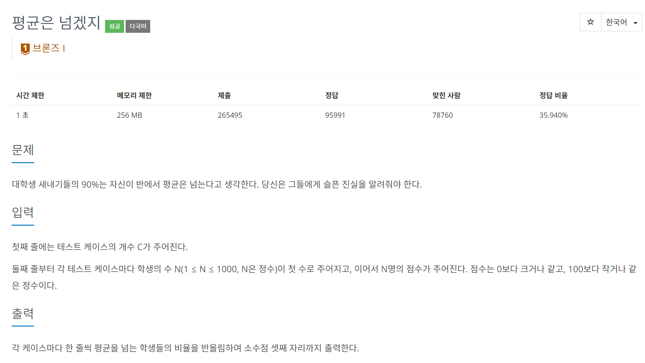 https://www.acmicpc.net/problem/4344