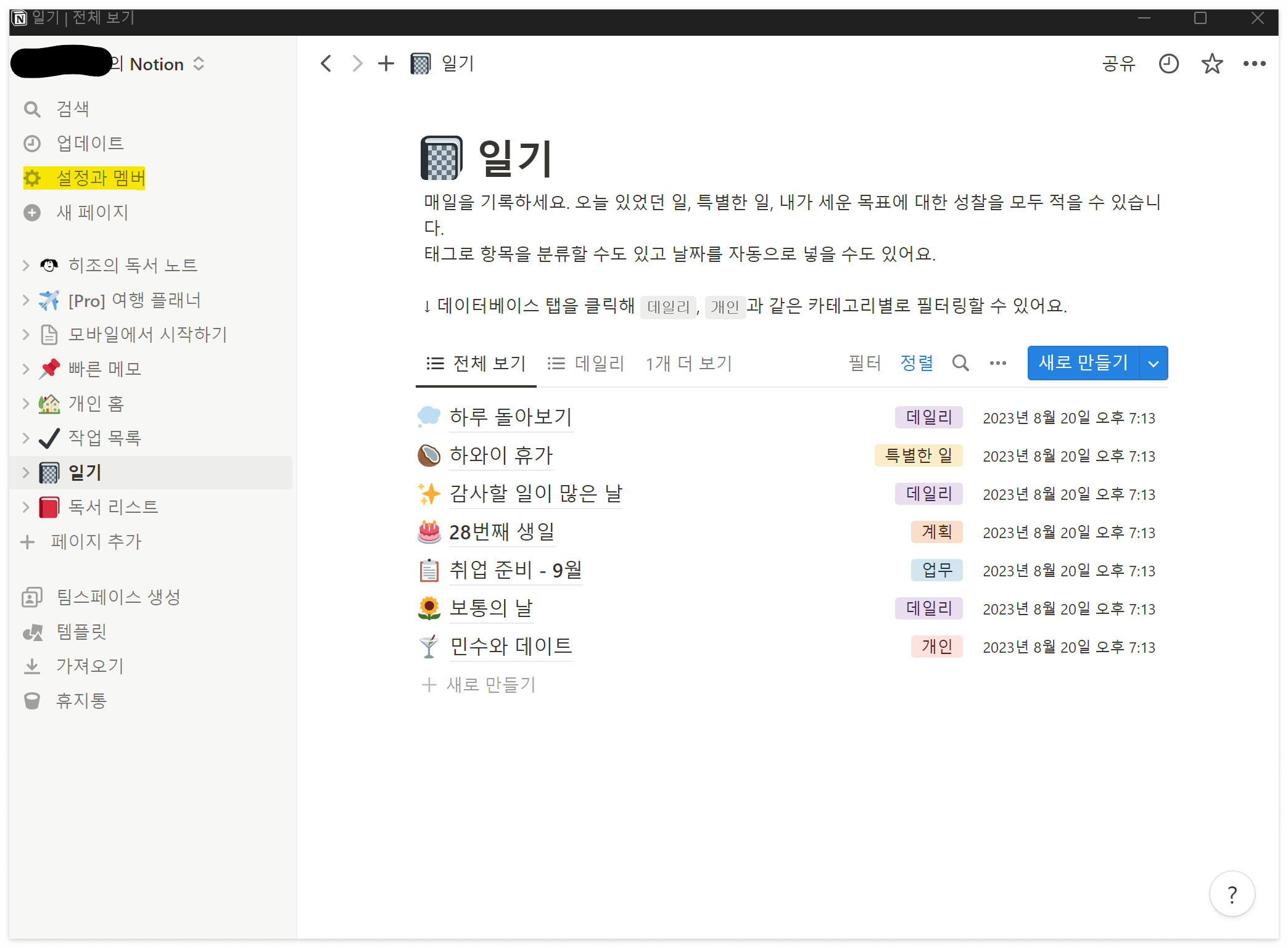 이미 노션을 다운받고 회원가입까지 한 상태를 가정한다.