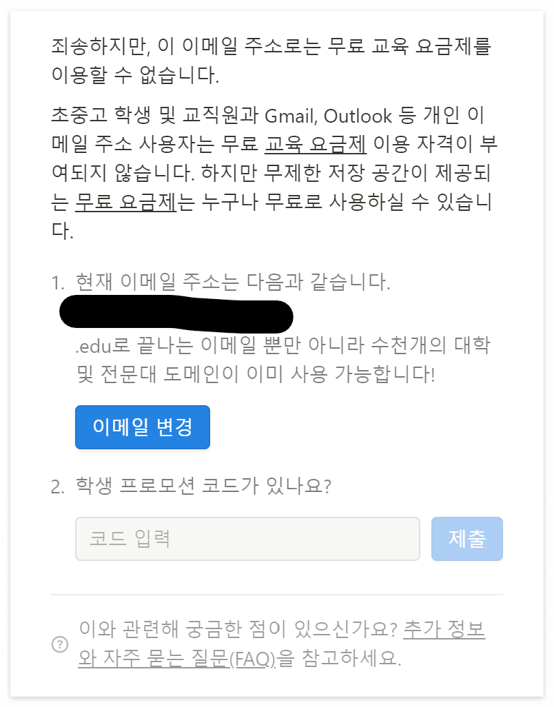 만약 학생용 이메일이 아니라 개인 이메일로 회원가입을 했다면 이런 창이 뜰 것이다.