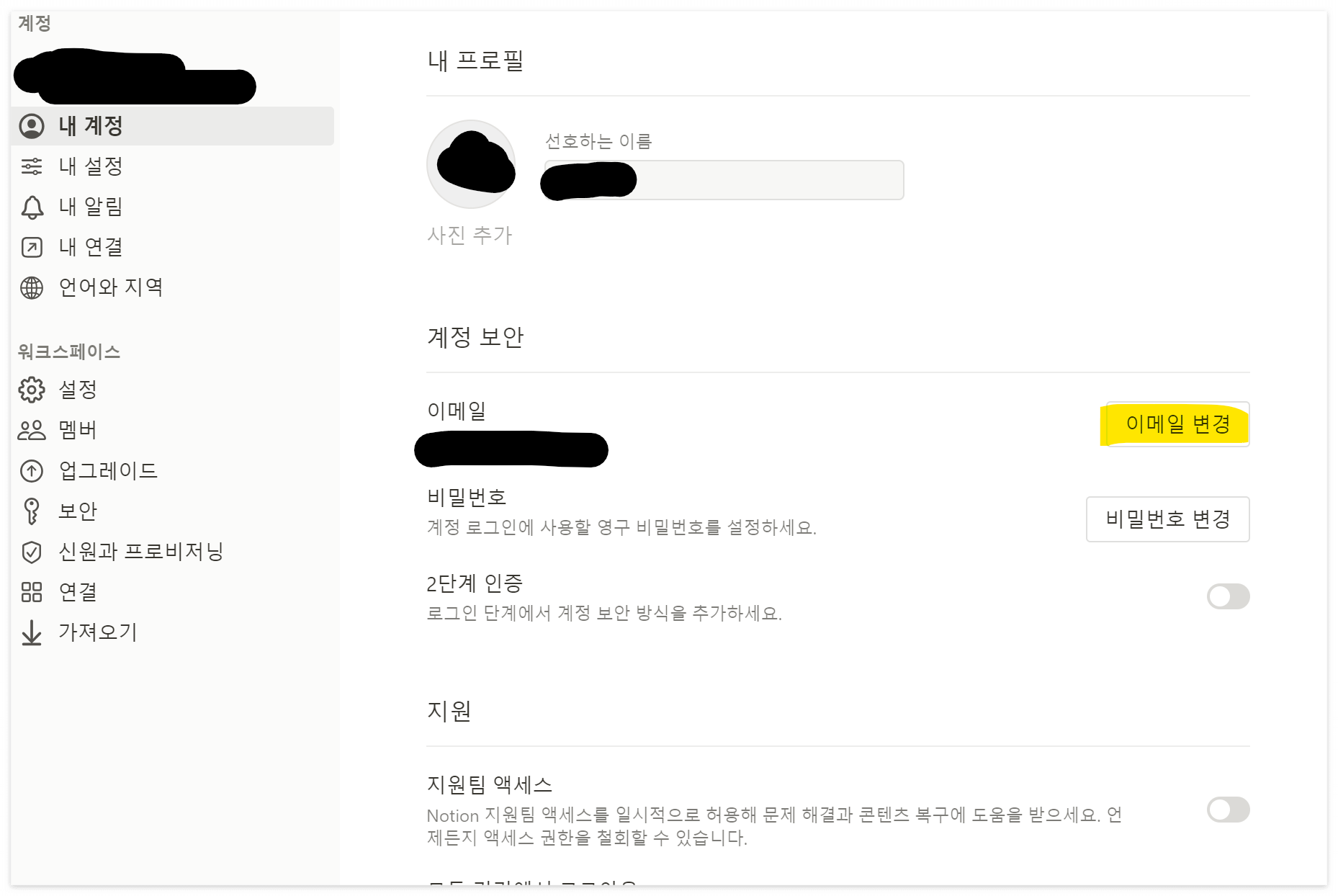 자 그럼 이메일을 변경하기 위해 내 계정 화면으로 이동된다.